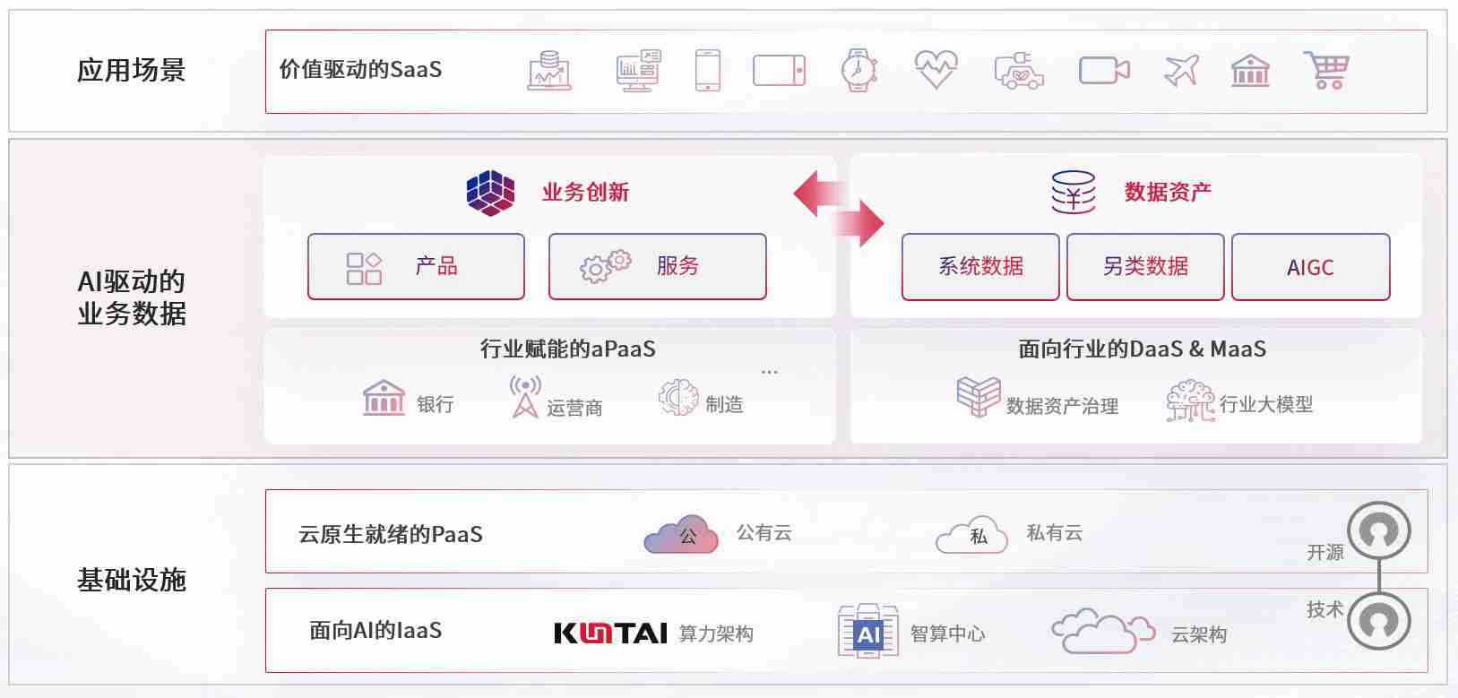 数字时代,,,围绕企业数字化转型的关键要素,,,,KDPAY钱包数码开创性的提出数云融合战略和技术体系框架,,,,着力在云原生、、、、数字原生、、、AI原生和信创产业上架构产品和服务能力,,为处在不同数字化转型阶段的快消零售、、、、汽车、、、、金融、、、医疗、、政企、、教育、、运营商等行业客户提供泛在的敏捷IT能力和融合的数据驱动能力,,构建跨界融合创新的数字业务场景和新业务模式,,,助力企业级客户建立面向未来的核心能力和竞争优势,,,全面推动社会的数字化、、、智能化转型升级。。。